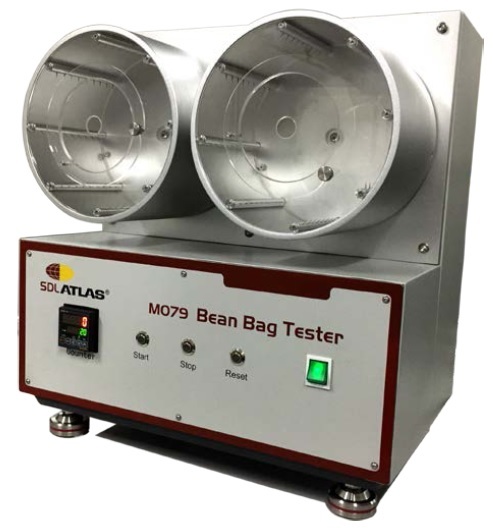 SDL Atlas珠枕勾丝测试仪,可检测织物的勾丝和光洁度性能。套上织物的珠枕袋在两个独立的测试筒内(每个筒内有8条针杆)随筒体的旋转而翻转。在旋转速度20rpm下翻转100次,配有预定的电子计数器。符合ASTM D 5362织物防勾丝性的标准试验方法要求。