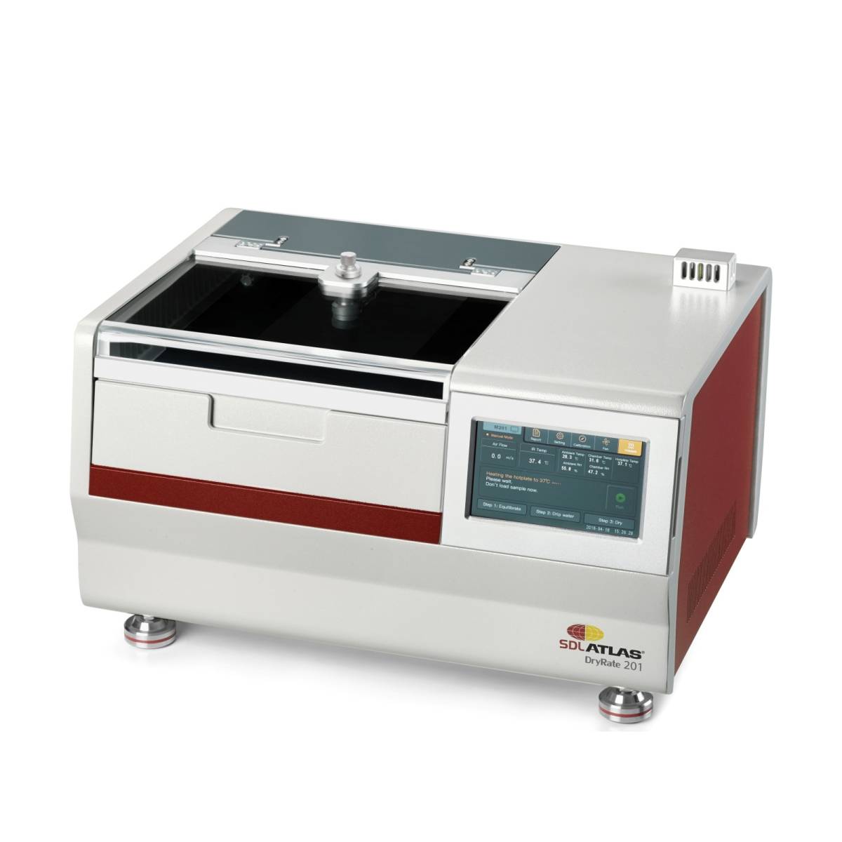 DryRate 201干燥速率测试仪是一款带有加热金属板的全自动先进设备,它可以模拟人体皮肤在37°C时的出汗情境并根据面料的蒸发速率来确定其干燥速率。